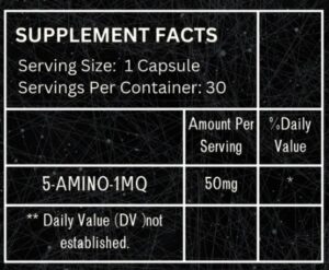 - 5-amino-1MQ content: 50mg per capsule